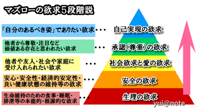 マズローの欲求5段階説の低階層が満たされると、より高階層の欲求を満たしたいと思うようになります。